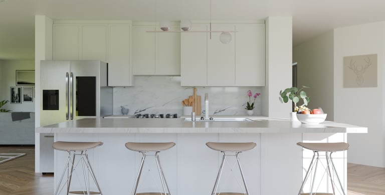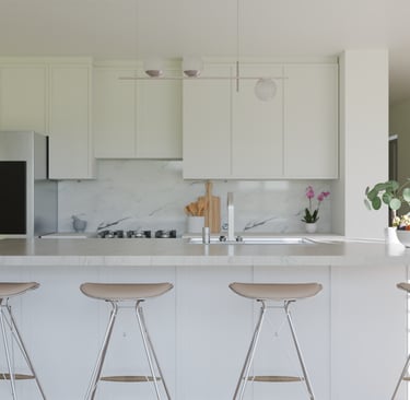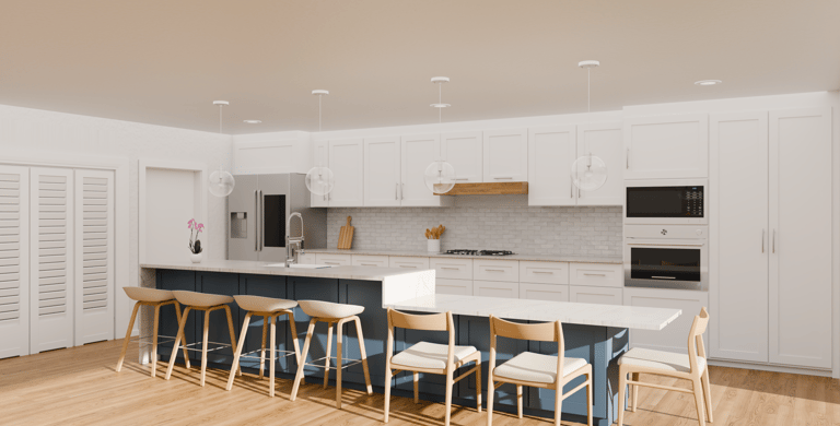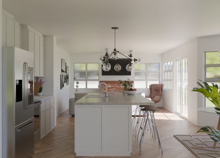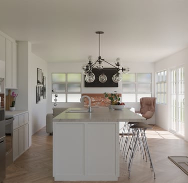 This project, in collaboration with DKI Restotech reimagined a dated kitchen by removing interior walls and adding large sliding doors to create a bright, open-concept layout. Detailed 3D renderings helped the client visualize the transformation before construction began, ensuring a smooth process and a modern, functional space that enhances both style and flow.